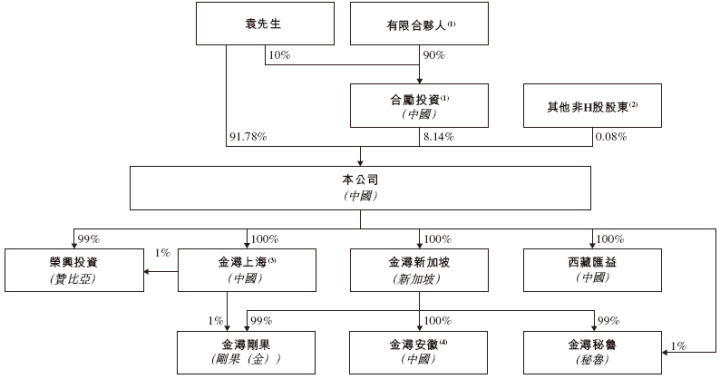 招股书显示,金浔股份在香港上市前的股东架构中,