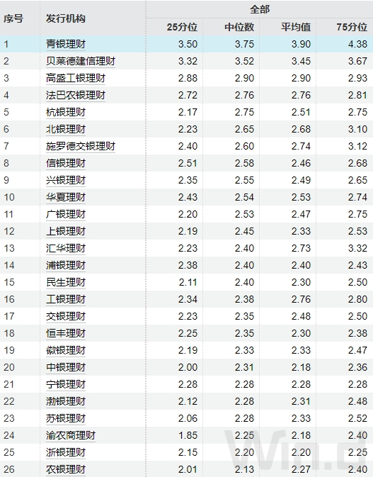 基于2026年4月6日至4月10日数据分析,银行理财子公司在固收+型产品中展现出显著的收益优势。青银理财收益率中位数达3.75%,贝莱德建信理财收益率中位数为3.52%,高盛工银理财收益率中位数达2.90%。
